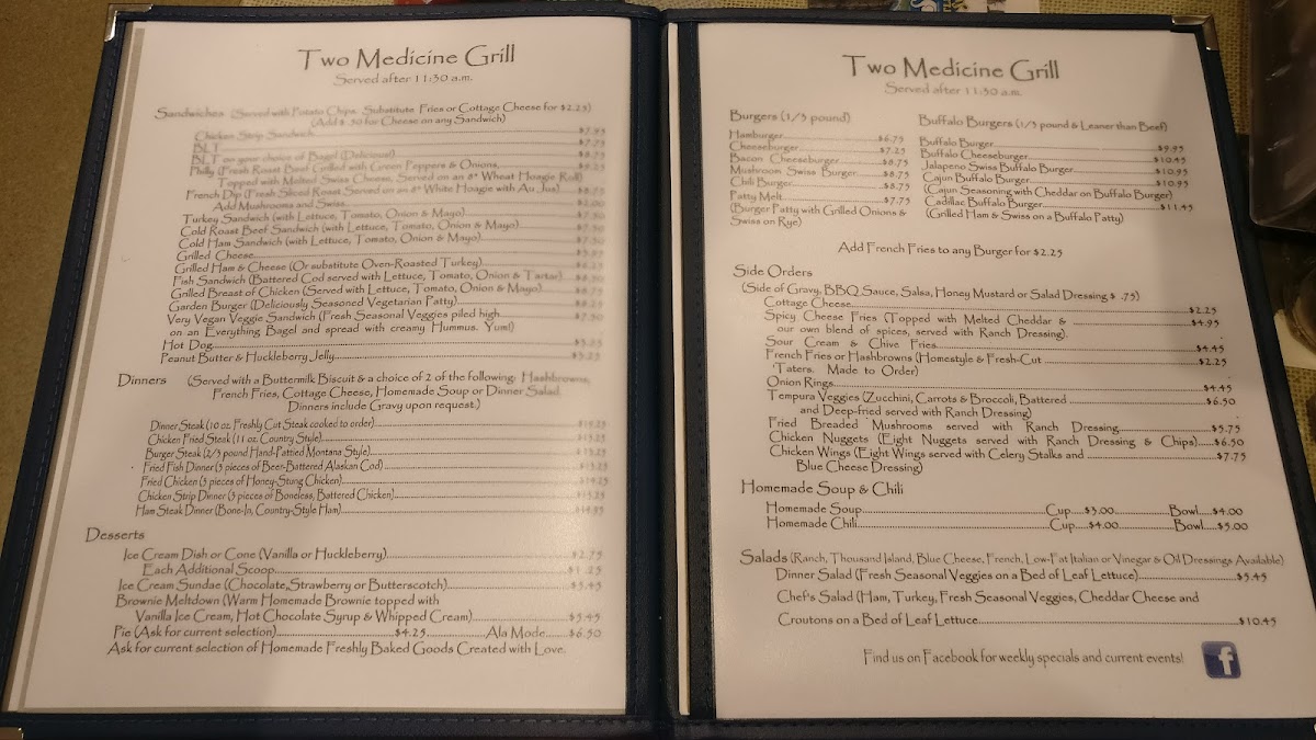 Welcome to Two Medicine Grill, a charming "hole in the wall" nestled in East Glacier Park, Montana. This eatery is perfect for those craving a hearty meal with a personal touch. The menu boasts an array of comforting options that cater to breakfast enthusiasts and lunch lovers alike.